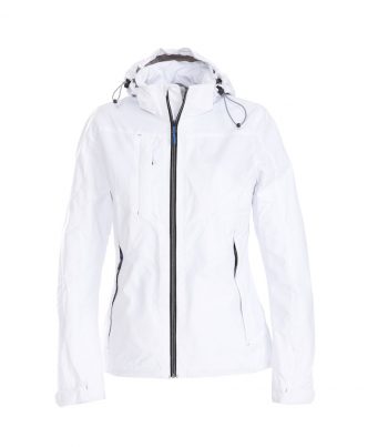 Vind- och vattenavvisande softshelljacka. Vänd vattentät dragkedja fram och i fickor. Innerficka med dragkedja till vänster. Avtagbar huva. Justerbar kardborreknäppning i ärm. Huva och nederkant är justerbara med elastiska snören. Dold broderi-dragkedja på insidan.