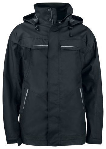 Vind- och vattenavvisande softshelljacka. Vänd vattentät dragkedja fram och i fickor. Innerficka med dragkedja till vänster. Avtagbar huva. Justerbar kardborreknäppning i ärm. Huva och nederkant är justerbara med elastiska snören. Dold broderi-dragkedja på insidan.