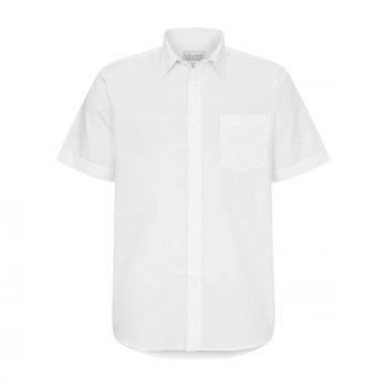 Pilotskjorta med kort ärm i blandmaterial med axelklaffar. Dubbla bröstfickor med lock, penn och märkeshållare. Ton i ton knappar, turn-down krage.