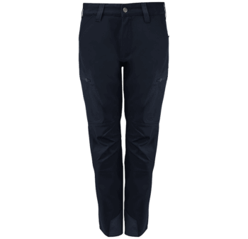 Midjebyxa utan frontveck. Sidofickor fram, säkerhetsficka med blixtlås på höger sida. Två utanpåliggande bakfickor. Två benfickor. D-ring för nycklar, ID-kort etc. Invändiga knäskyddsfickor.