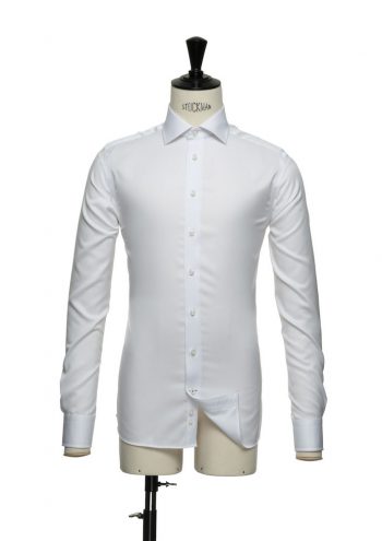 Klasisk damskjorta med sofistikerade detaljer. Rutigt foder i kontrasterande färg på insida av krage samt manschett. Även knapphål i kontrasterande färg. Högkvalitativ tät twill med glans som gör den mindre genomskinlig. Delat ok för ökad rörlighet, kort krage. Tejpade sömmar samt skrynkelfribehandling.
