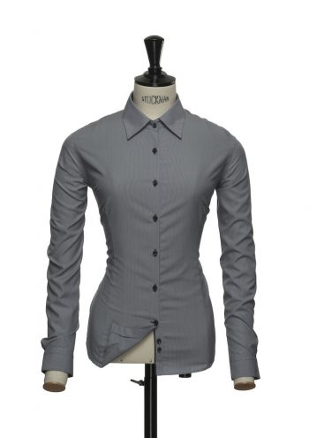 Smalrandig herrskjorta i finaste twill. Kort krage, delat ok för bättre rörlighet. Tejpade sömmar samt skrynkelfribehandling. Matchande näsduk medföljer.