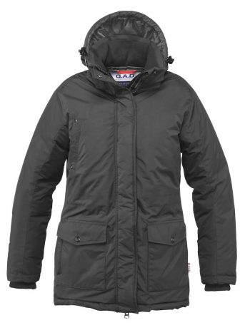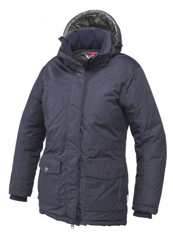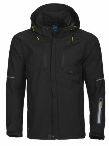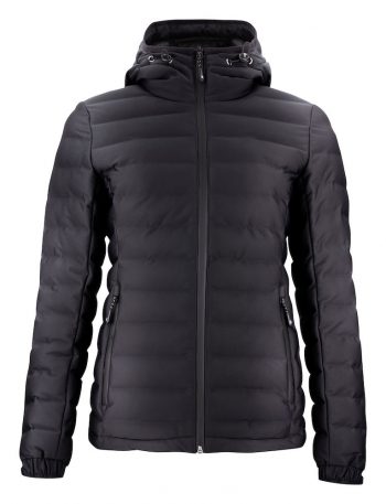 Vind- och vattentät vadderad softshelljacka i herrmodell med avtagbar huva och snölås. Förböjda ärmar, dold mudd i ärmslut samt reflexpiping på ärmen. Innerficka anpassad för mobil.